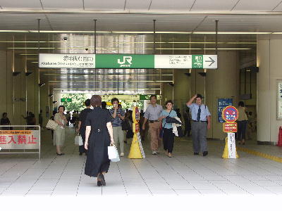 | JR赤羽駅西口北改札口側。 駅は南と北の2ヶ所で、 東西に通り抜けられるようになっている。 画像 de5092 撮影時刻 2002/07/13 12:43:16 |