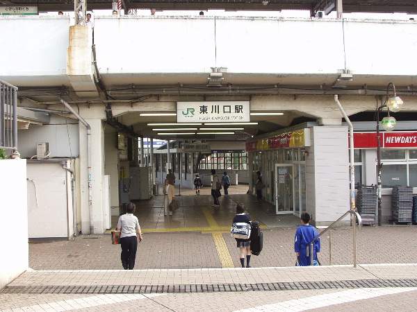 JR武蔵野線東川口駅は高架下を利用した駅で、改札は1ヶ所で南北に出ることが出来、その両方に埼玉高速鉄道への階段が設置されている。