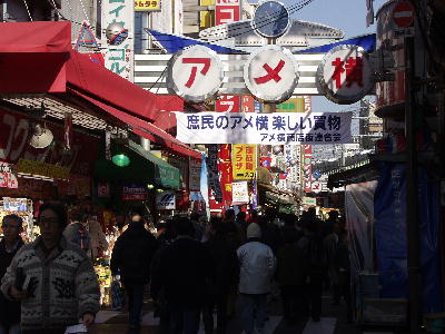 上野から御徒町までの高架下は「アメヤ横町」として全国的にも有名である。
