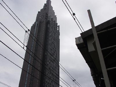 | ホームから見たNTTドコモ代々木ビル。 あまりに高くて全景はなかなか捉えられない。 新宿駅からもよく見える。 画像 de6197 撮影時刻 2002/11/17 12:31:57 |