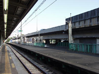 駅舎は首都高4号新宿線の下にあり、そのために圧迫感がある。