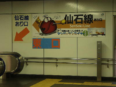 | JR仙台駅東口、仙石線へのおり口。 仙石線はあおば通−陸前原ノ町間は地下路線のため、 乗り換えは地下へおりなければならない。 画像 de8631 撮影時刻 2003/07/26 18:40:14 |