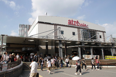 | リニューアル前の南口駅舎全景。 奥の建物が複合商業施設「三鷹ロンロン」。 画像 de5414 撮影時刻 2002/08/15 17:22:49 |