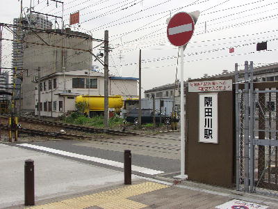 日比谷線の高架を挟んで隅田川貨物駅が広がる。