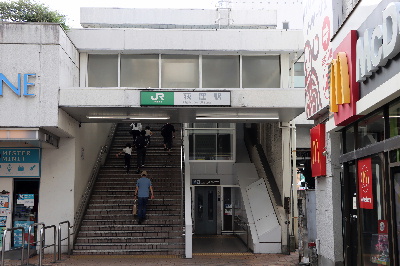 西口北側は駅から階段を借りて地上に至る。