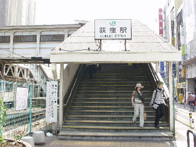 | JR荻窪駅西口南側。 跨線橋を渡って南側駅前道路に出られる。 画像 de8029 撮影時刻 2003/06/08 09:22:38 |