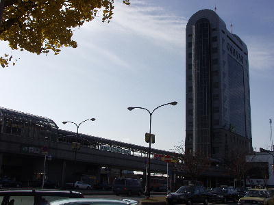 | 西側の駅前ロータリー。 高層ビルも建ち、 西側と東側ではかなりイメージが違う。 画像 de2517 撮影時刻 2001/12/01 10:06:46 |