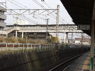 北側は快速線の線路や駅事務所の用地などを跨ぎ、
