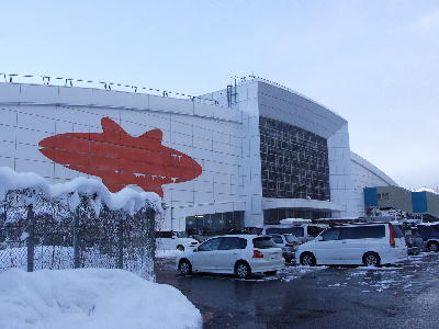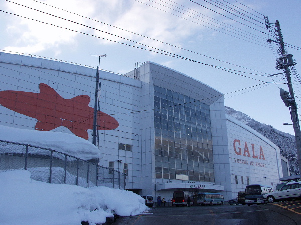 | JRガーラ湯沢駅舎の裏側。 駐車場になっている。 ガーラのマークが付いている。 画像 de3098 撮影時刻 2002/02/10 16:54:16 |