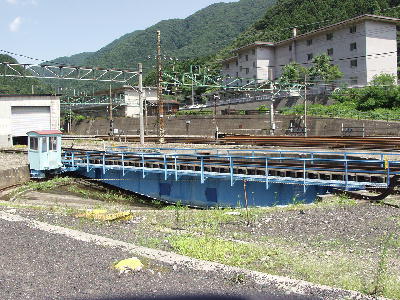 | 水上駅近くにある転車台。 高崎−水上間でD51型蒸気機関車による 客車牽引の臨時列車が運行されている。 画像 de5191 撮影時刻 2002/08/03 12:59:55 |