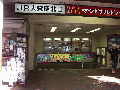 | JR大森駅北口。 大森駅前ビル「RaRa」を地下で跨ぐ形で 池上通り沿いに設置されている。 画像 de5398 撮影時刻 2002/08/15 15:12:51 |