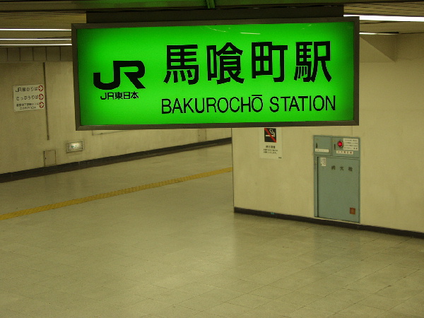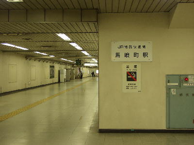 | 地下通路にある駅表示板。 「JR快速線馬喰町駅」と書かれており、 正確にはここから先が馬喰町駅になる。 画像 de6340 撮影時刻 2002/12/14 11:35:45 |