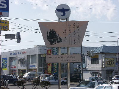 | 駅前の渡辺淳一氏直筆の原稿の看板。 「子供のときから 僕は千歳線というのが 好きだった/渡辺淳一」と書かれている。 画像 de3445 撮影時刻 2002/03/10 13:49:19 |
