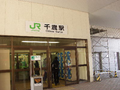 | JR千歳駅側面出入り口。 千歳駅は基本的に駅高架を利用した駅で、 高架下に出入り口がある。 画像 de3448 撮影時刻 2002/03/10 13:50:10 |