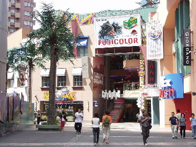 | USJに続く駅前商店街。 まるで映画のセットのようなデザインで、 日本とは思えない。 こういった所もUSJのイメージに合わせている。 画像 de1710 撮影時刻 2001/09/09 12:50:11 |