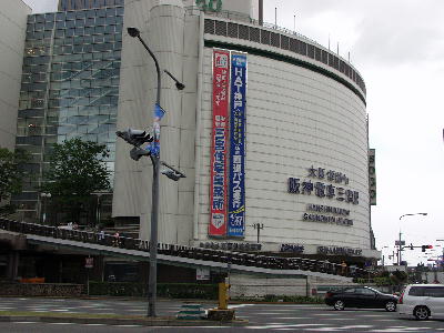 | 三宮阪神ビルに表示された、 「阪神電鉄三宮駅」の文字。 ここはそごう神戸三宮店になっている。 画像 de4206 撮影時刻 2002/05/18 11:39:42 |