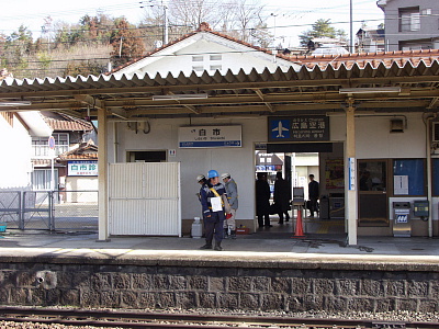 白市駅ホームの様子。 ここにも「広島空港のりかえ」と書かれている。 画像 de6800 撮影時刻 2003/03/08 09:40:32 |