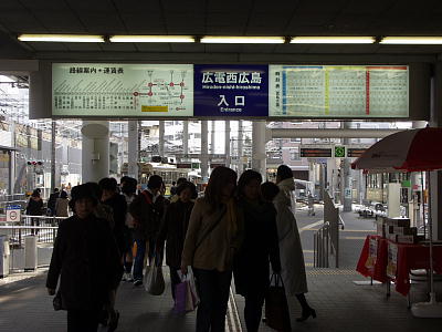 広島電鉄西広島駅のホーム入り口。 電光掲示板まで備えた本格的な駅である。 画像 de6882 撮影時刻 2003/03/08 16:12:46 |