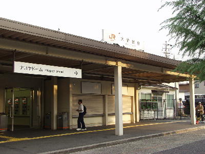 | JR大曽根駅旧南口駅舎。 独立した駅舎であるが乗降客は少ない。 ナゴヤドームで試合があるにもかかわらず、 駅正面のシャッターは降りたままである。 画像 de5654 撮影時刻 2002/09/21 17:13:59 |
